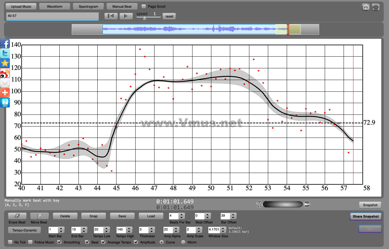 : obtaining waveform, spectrogram, tempo-dynamic curve, performance worm and IOI deviations by just clicking a few buttons.