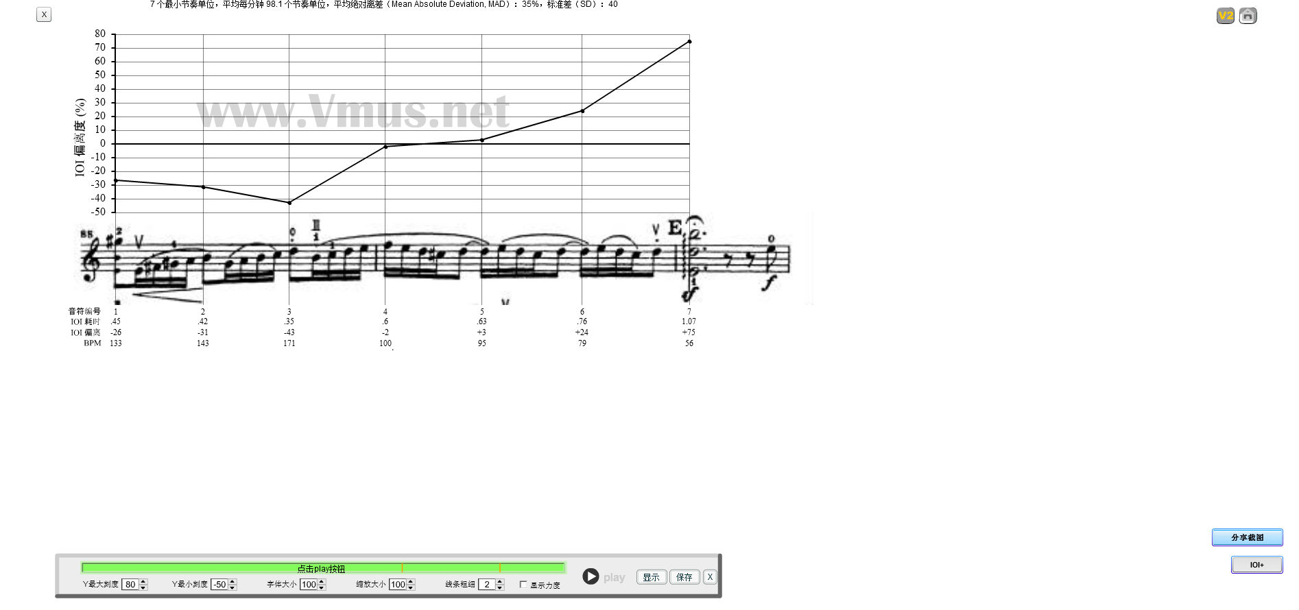 7 个最小节奏单位,平均每分钟 98.1 个节奏单位,平均绝对离差(Mean Absolute Deviation, MAD):35%,标准差(SD):40