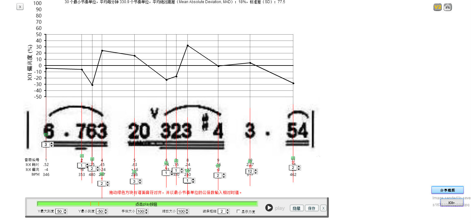 30 个最小节奏单位,平均每分钟 330.9 个节奏单位,平均绝对离差(Mean Absolute Deviation, MAD):18%,标准差(SD):77.5