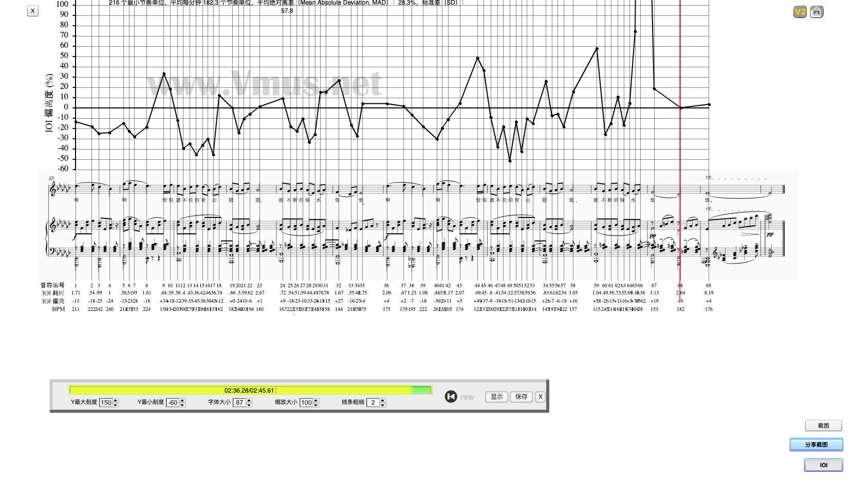 216 个最小节奏单位,平均每分钟 182.3 个节奏单位,平均绝对离差(Mean Absolute Deviation, MAD):28.3%,标准差(SD):57.8