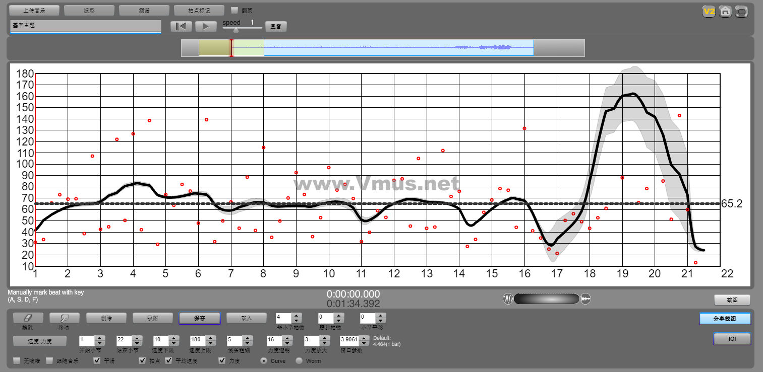 : obtaining waveform, spectrogram, tempo-dynamic curve, performance worm and IOI deviations by just clicking a few buttons.