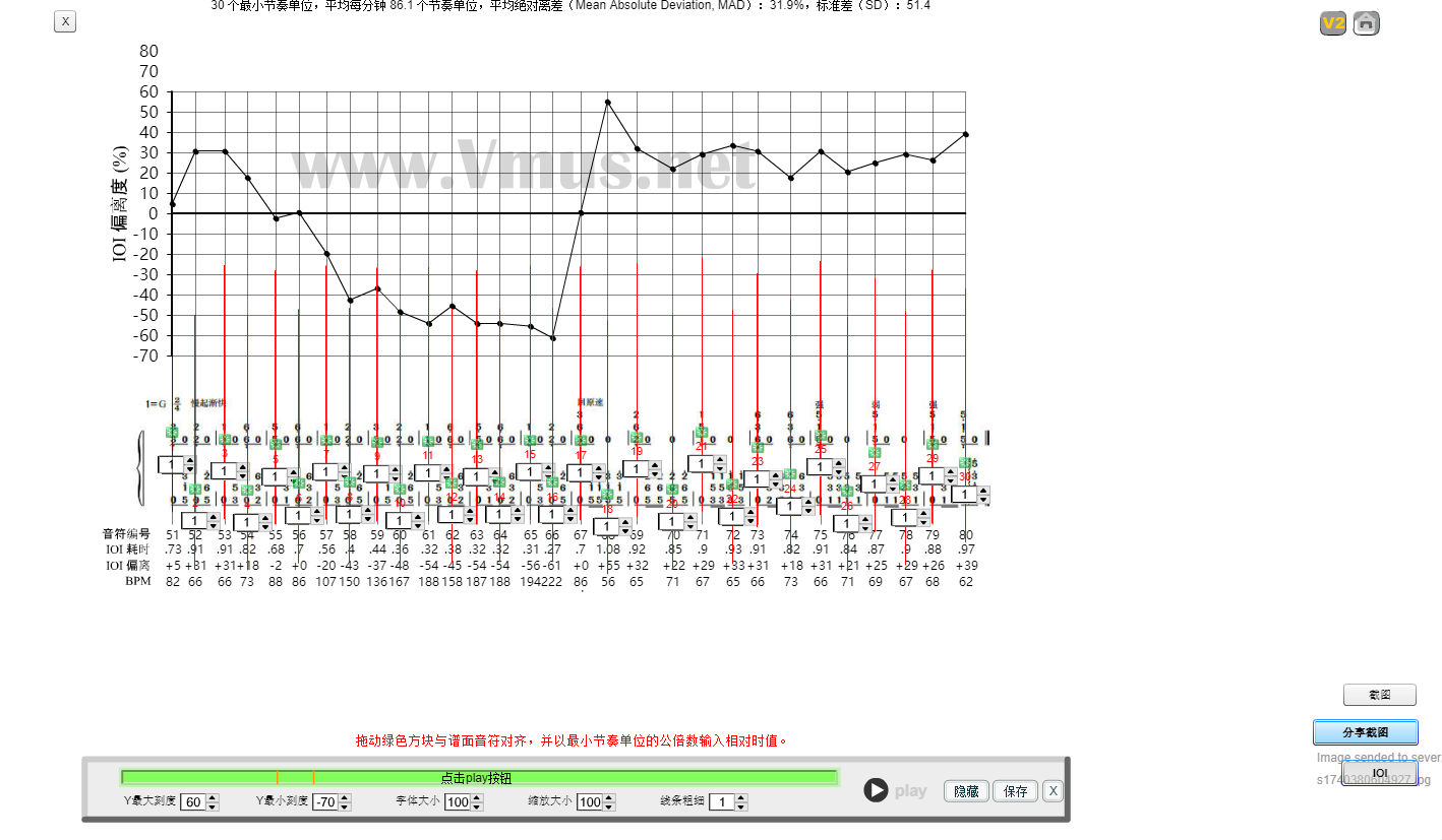 30 个最小节奏单位,平均每分钟 86.1 个节奏单位,平均绝对离差(Mean Absolute Deviation, MAD):31.9%,标准差(SD):51.4