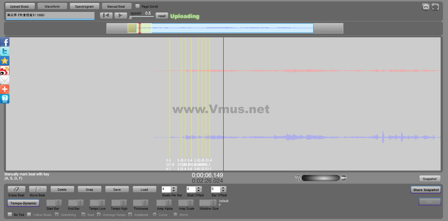 There are 7 minimum rhythmic units, about 237 units per minute.